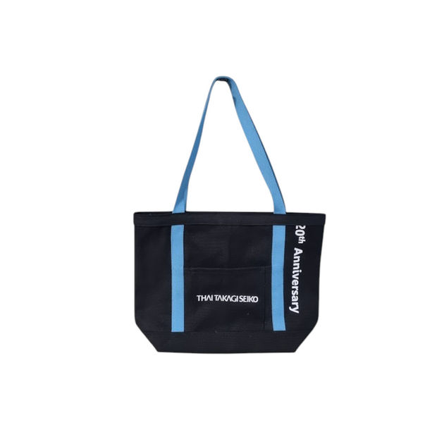Designed with a sleek black base and accented by vibrant blue handles and stripes, this bag is both eye-catching and practical. The spacious main compartment and handy front pocket make it perfect for daily errands, work, or casual outings. Durable and lightweight, it’s a great way to carry your essentials while commemorating a special milestone. Show off your appreciation for quality and tradition with this limited-edition tote!